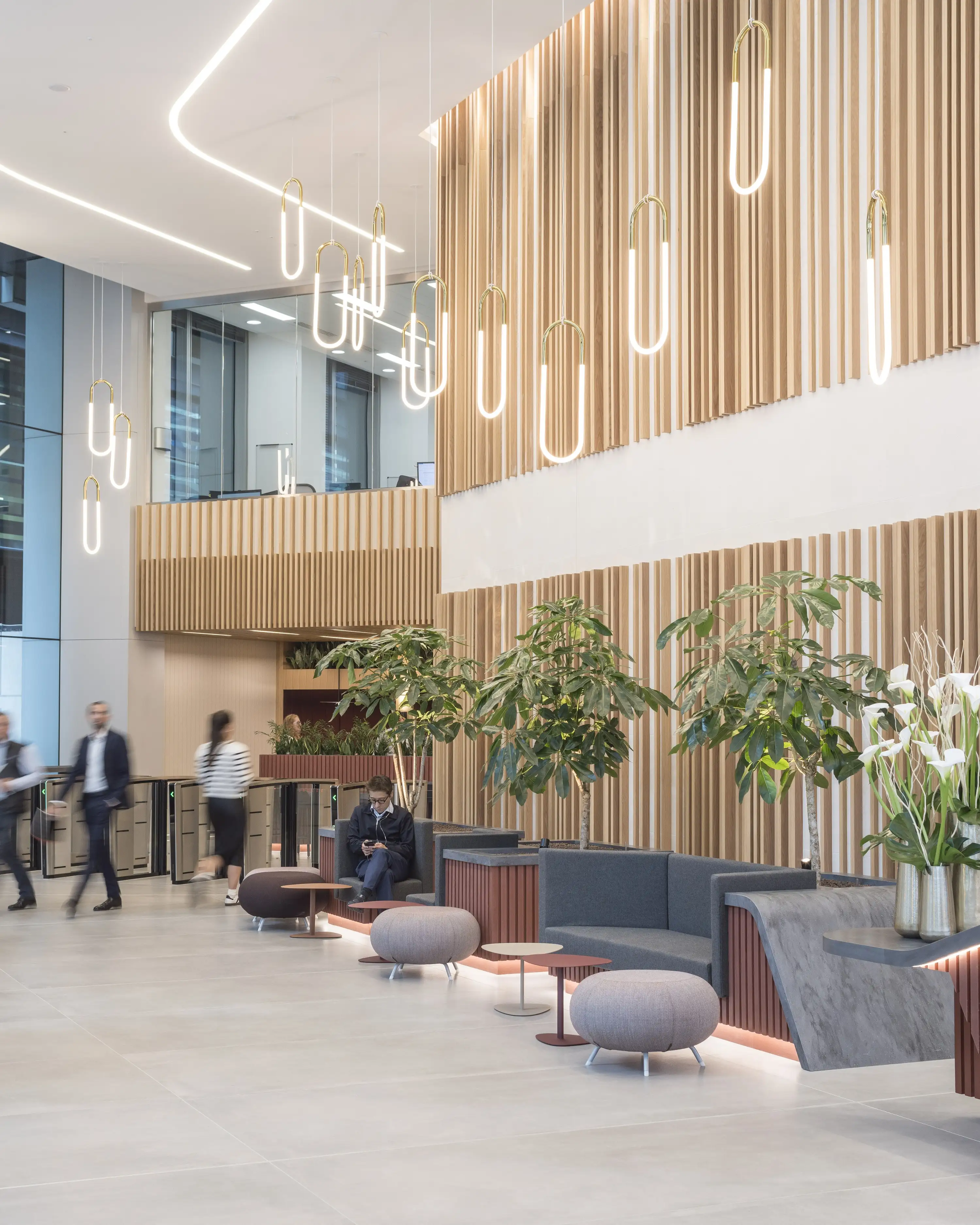 Utilising a palette of warm tones and materials, we have comprehensively reimagined this grand reception, creating a welcoming new entrance to this landmark 26 storey tower.