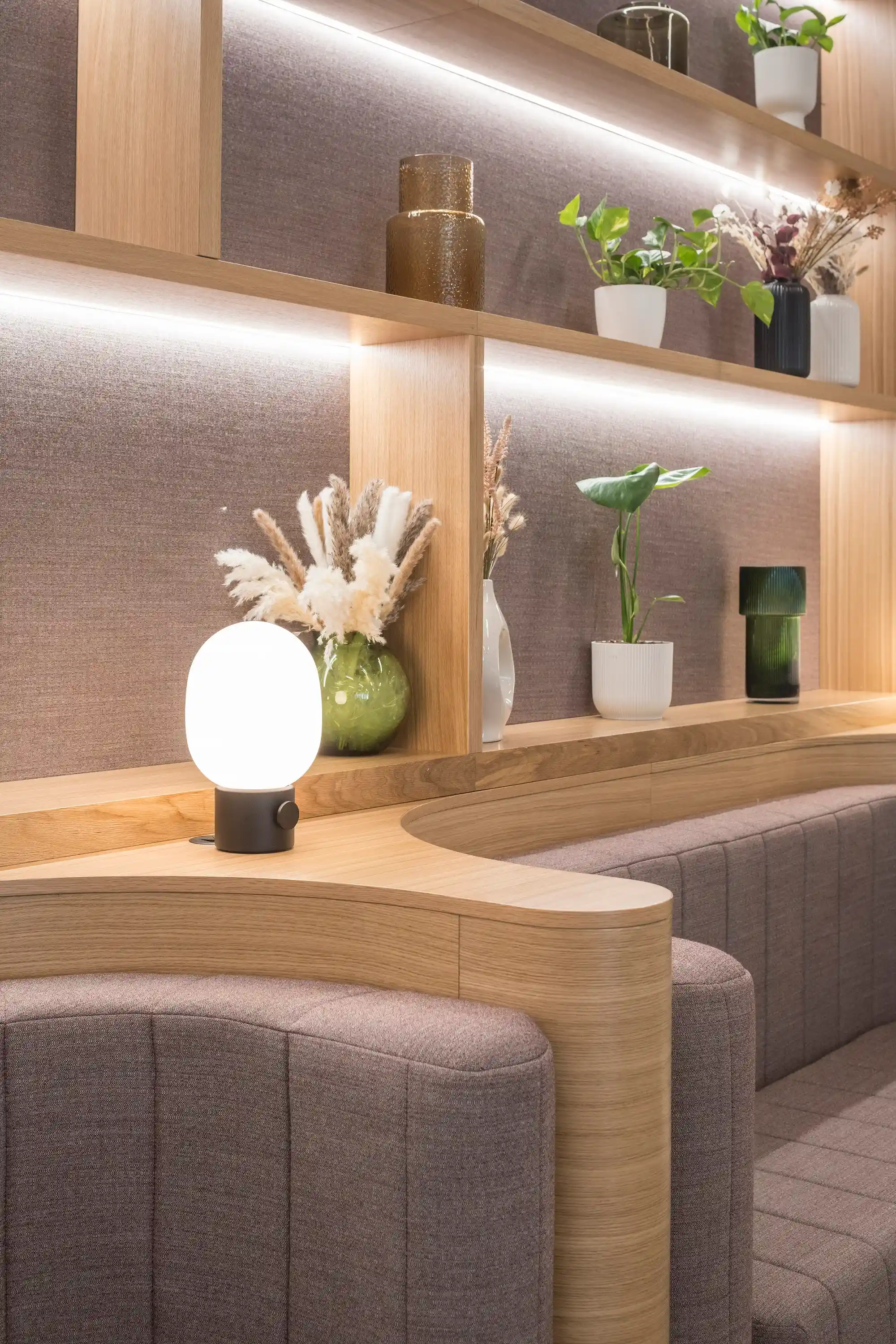 In this era of re-use, our design sustainably retains the original Portland stone cladding of the primary core and overlays a palette of warm timber, natural-based fabrics and earthy-red concretes - a radical change from the previous fit-out.